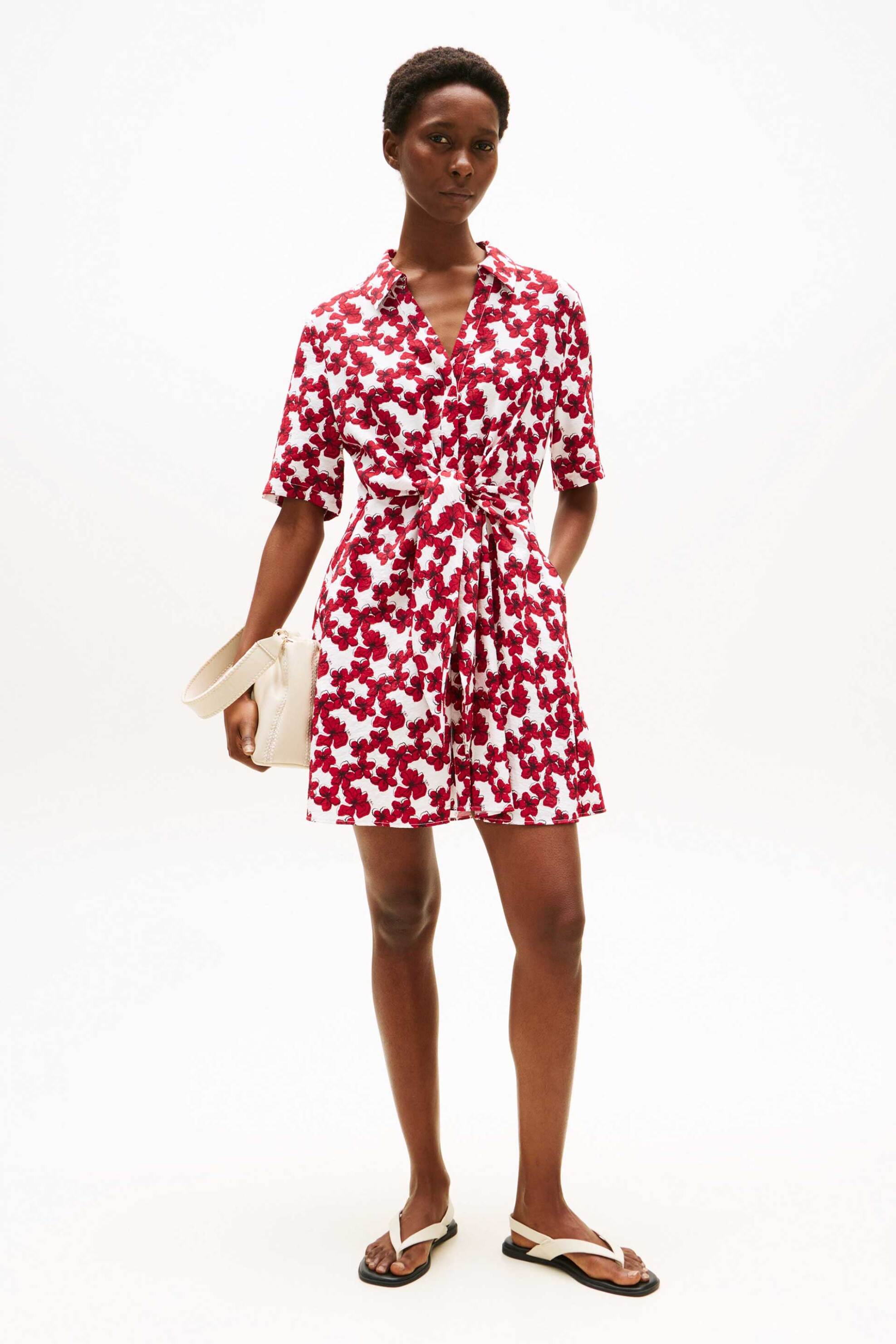 Γυναικείο mini φόρεμα. Floral print. Κλείσιμο με κουμπιά και ζώνη. Κοντό μανίκι. Προέλευση: Κίνα. 84% βισκόζη, 16% polyamide SARKK ΑΕ