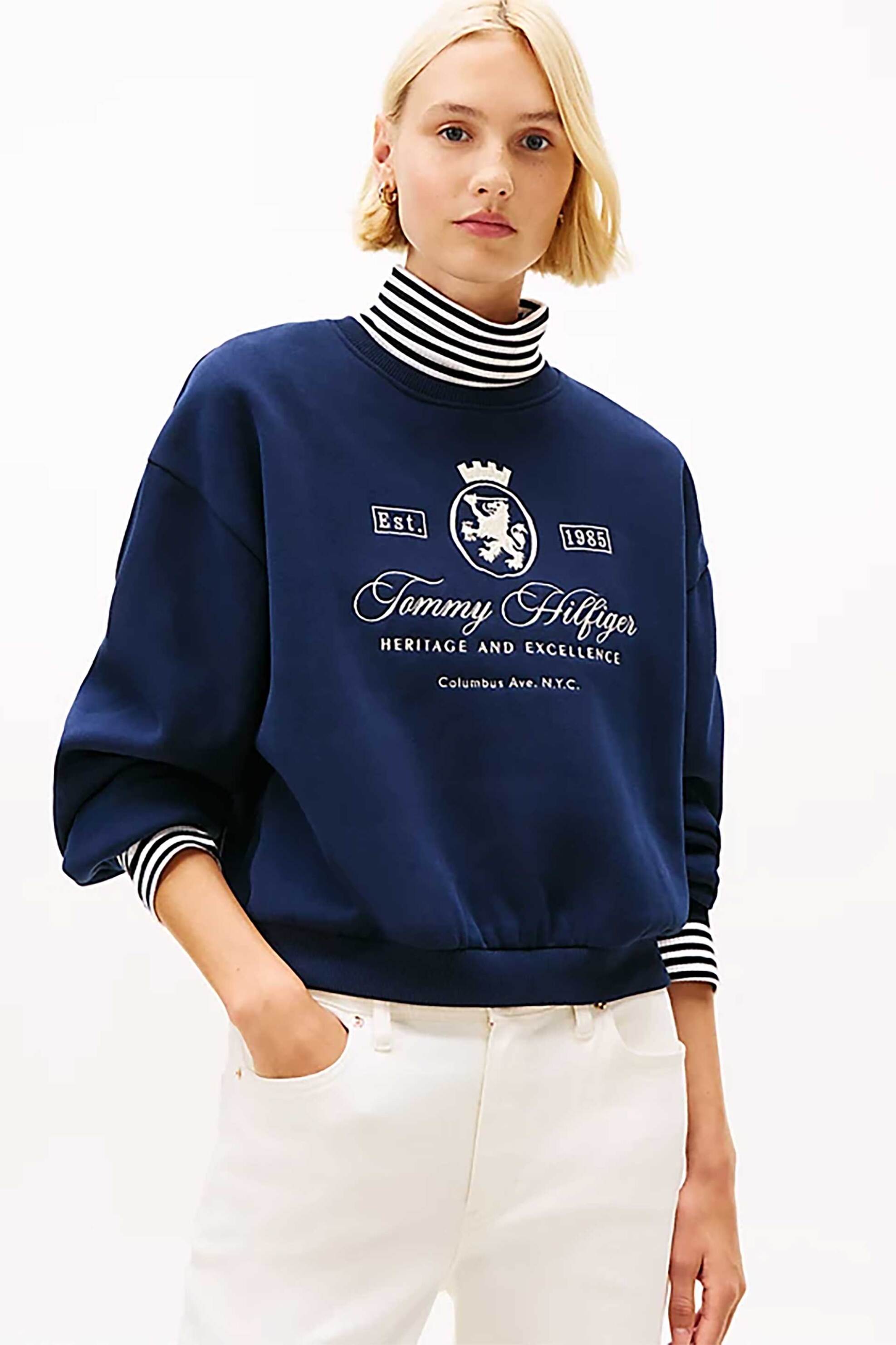 Γυναικεία μπλούζα φούτερ. Λογότυπο στο στήθος. Στρογγυλή λαιμόκοψη. Ribbed τελειώματα. Προέλευση: VN. 100% polyester SARKK ΑΕ