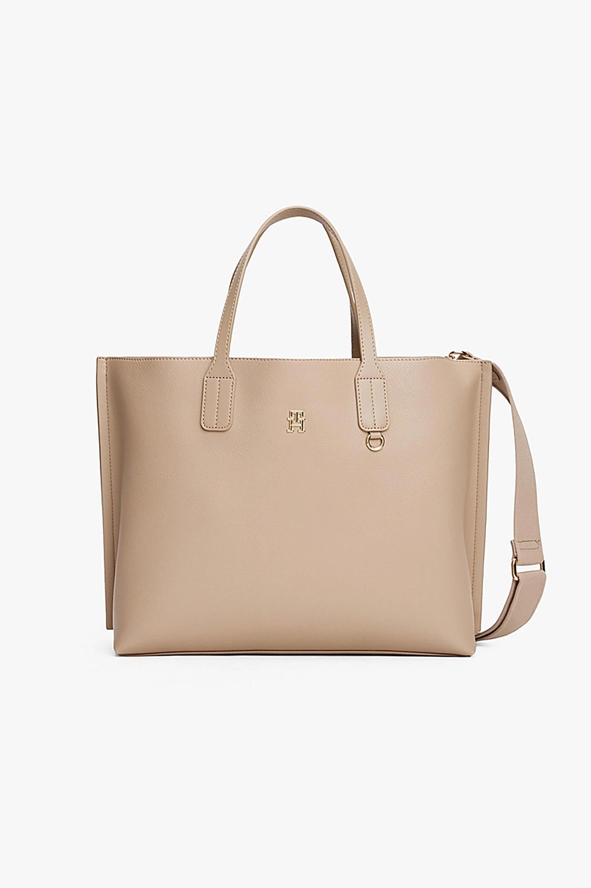 Γυναικεία τσάντα χειρός. Μεταλλικό monogram. Δύο λαβές στο πάνω μέρος. Ρυθμιζόμενο αφαιρούμενο λουράκι χιαστί. Τρεις κύριες θήκες. Διαστάσεις: 40 x 15 x 30 cm. Κλείσιμο με φερμουάρ. Προέλευση: KH. 100% polyurethane SARKK ΑΕ