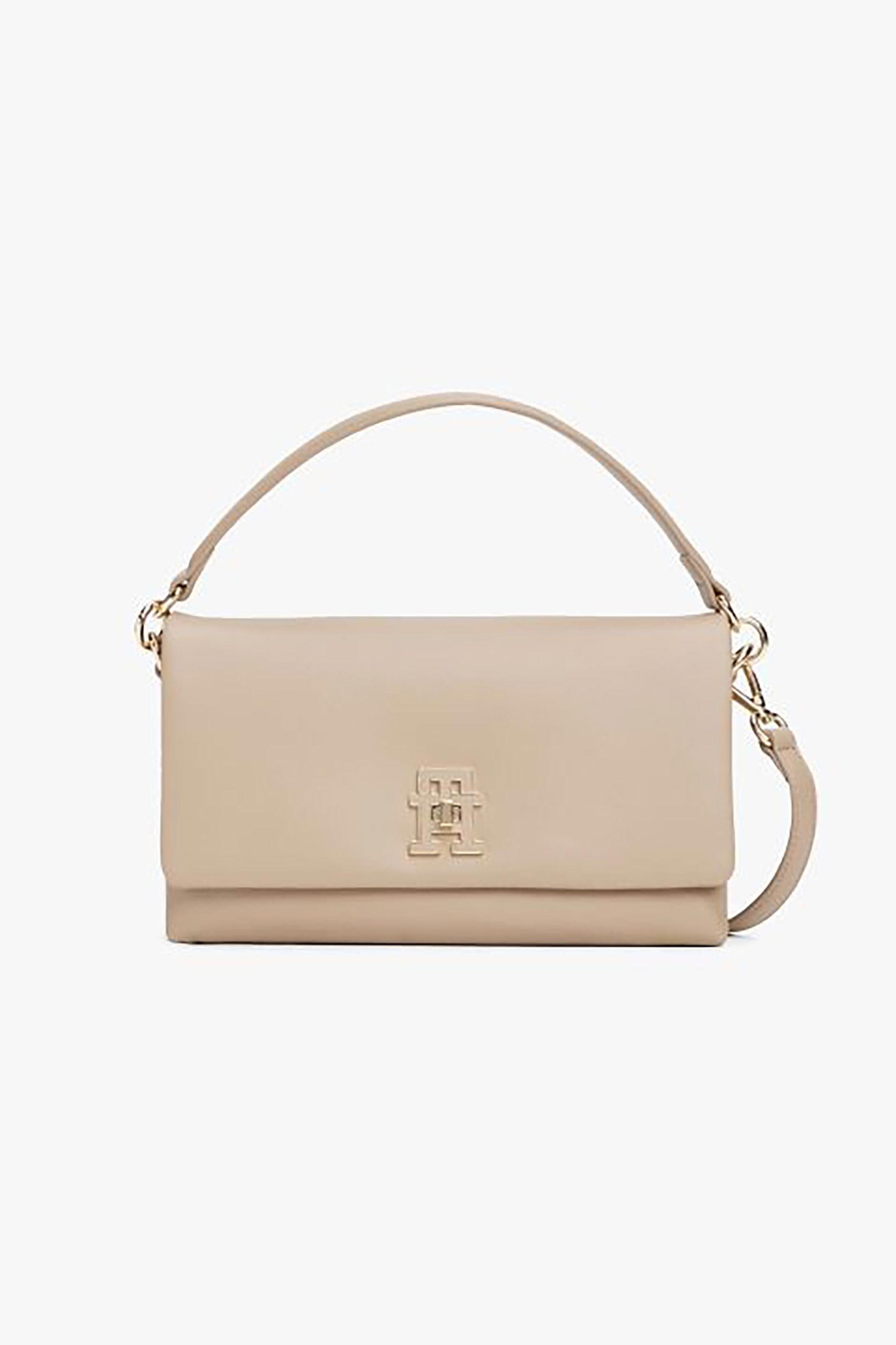 Γυναικεία τσάντα χειρός. Μεταλλικό monogram. Χειρολαβή στο πάνω μέρος. Ρυθμιζόμενος αφαιρούμενος ιμάντας. Τρεις εσωτερικοί χώροι. Κλείσιμο με κούμπωμα. Διαστάσεις: 26 x 13 x 15 cm. Προέλευση: KH. 100% polyurethane SARKK ΑΕ