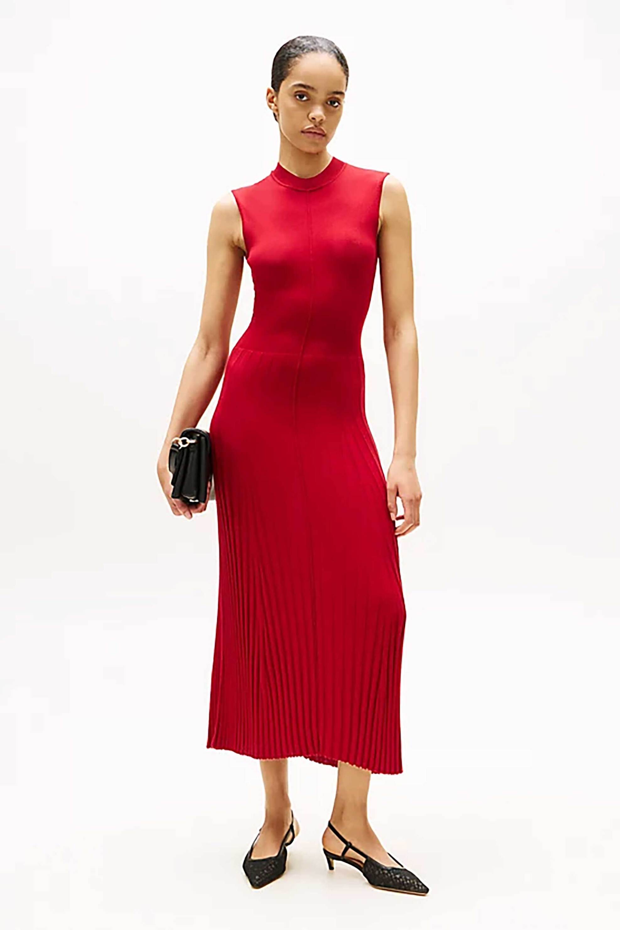Γυναικείο midi φόρεμα. Μονόχρωμο. Αμάνικο. Στρογγυλή λαιμόκοψη. Regular fit. Προέλευση: CΝ. 90% rayon, 10% μετάξι SARKK ΑΕ