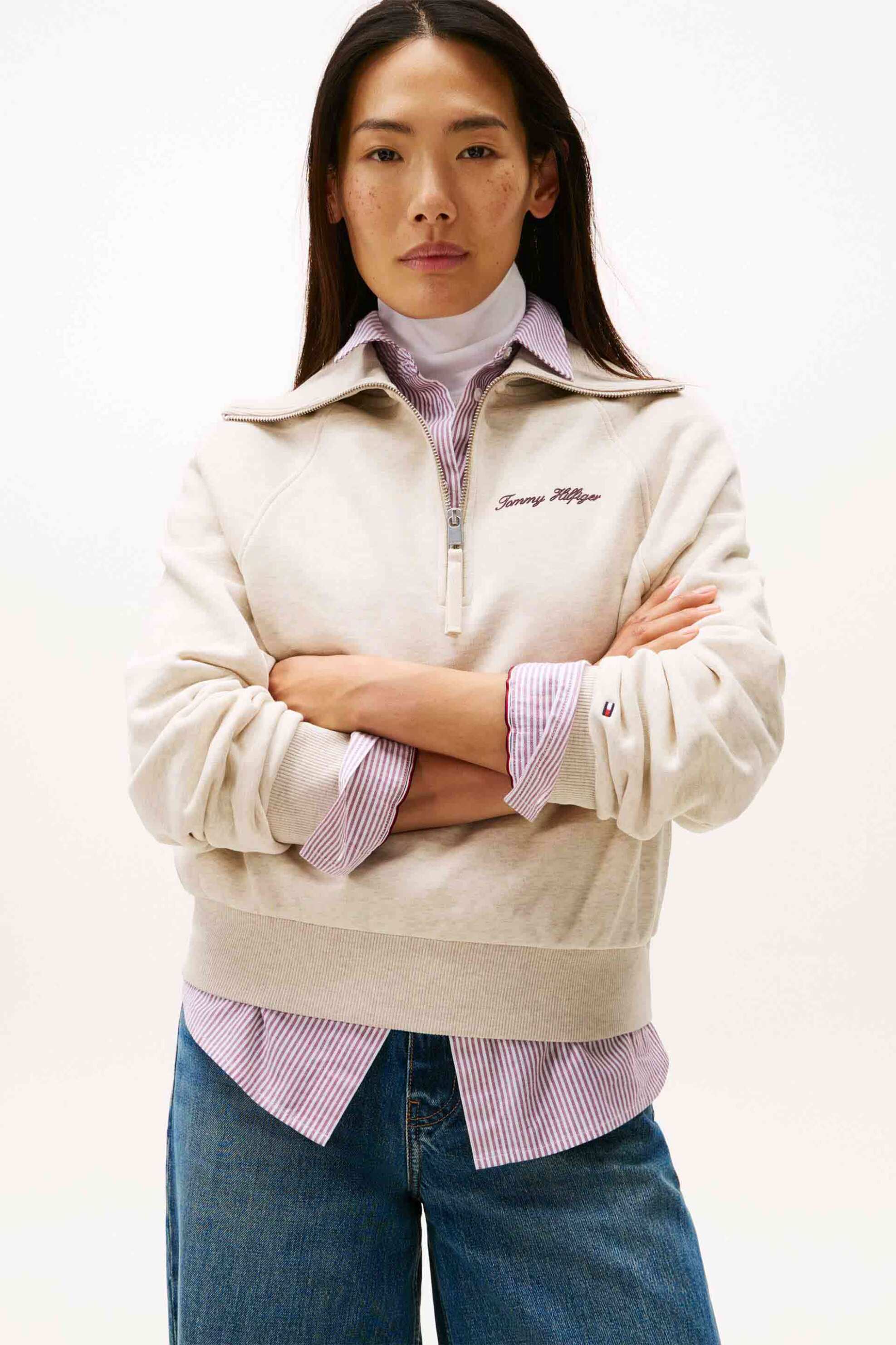 Γυναικείο fleece. Λογότυπο στο στήθος. Φερμουάρ 1/2. Ribbed τελειώματα. Regular fit. Προέλευση: BD. 77% βαμβάκι, 23% polyester SARKK ΑΕ