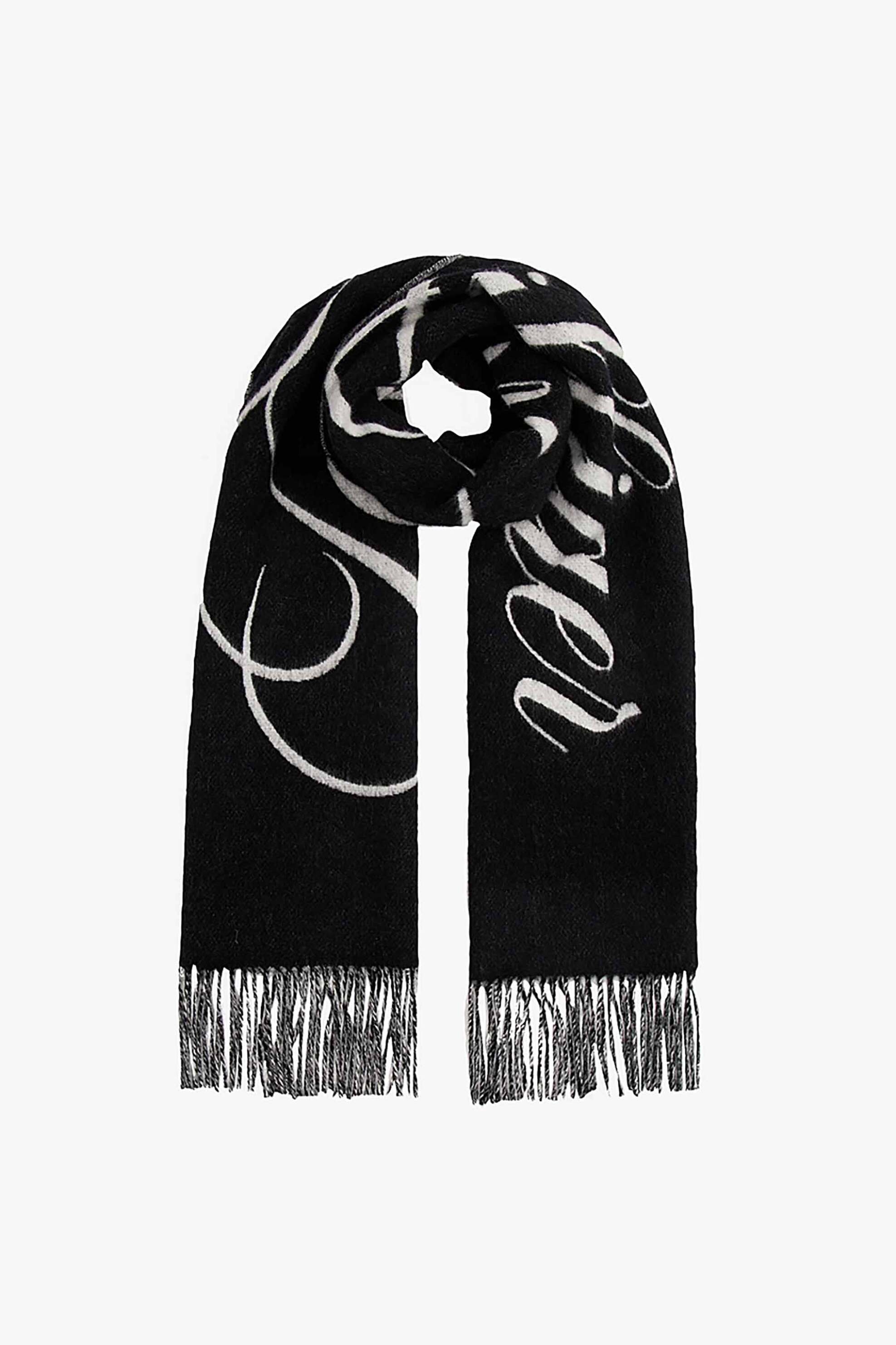 Γυναικείο κασκόλ. Λογότυπο. Κρόσια στο τελέιωμα. Διαστάσεις: 210 x 39 cm. Προέλευση: CN. 100% μαλλί SARKK ΑΕ
