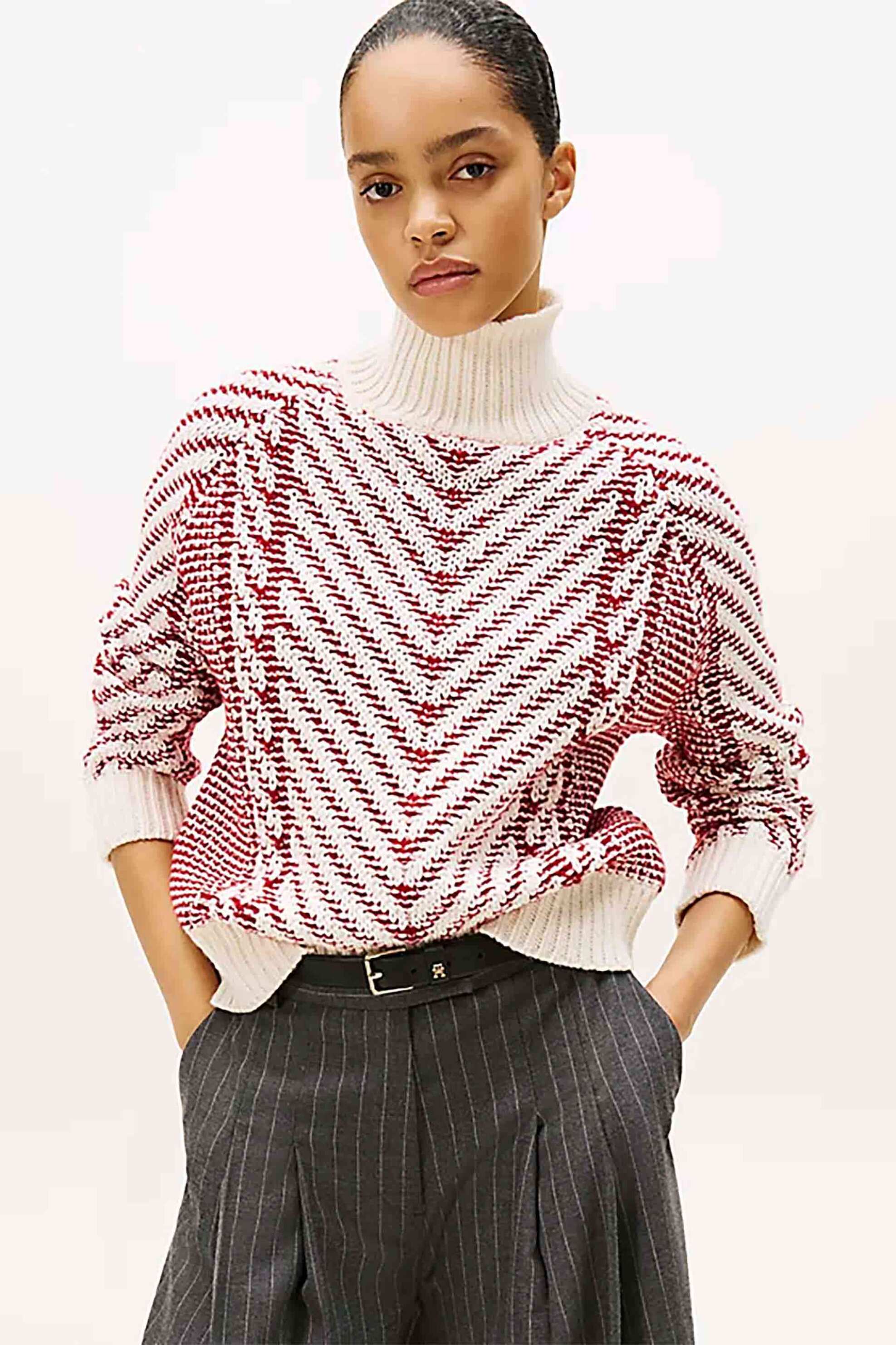 Tommy Hilfiger γυναικείο μάλλινο πουλόβερ με σχέδιο στην πλέξη Relaxed Fit | M