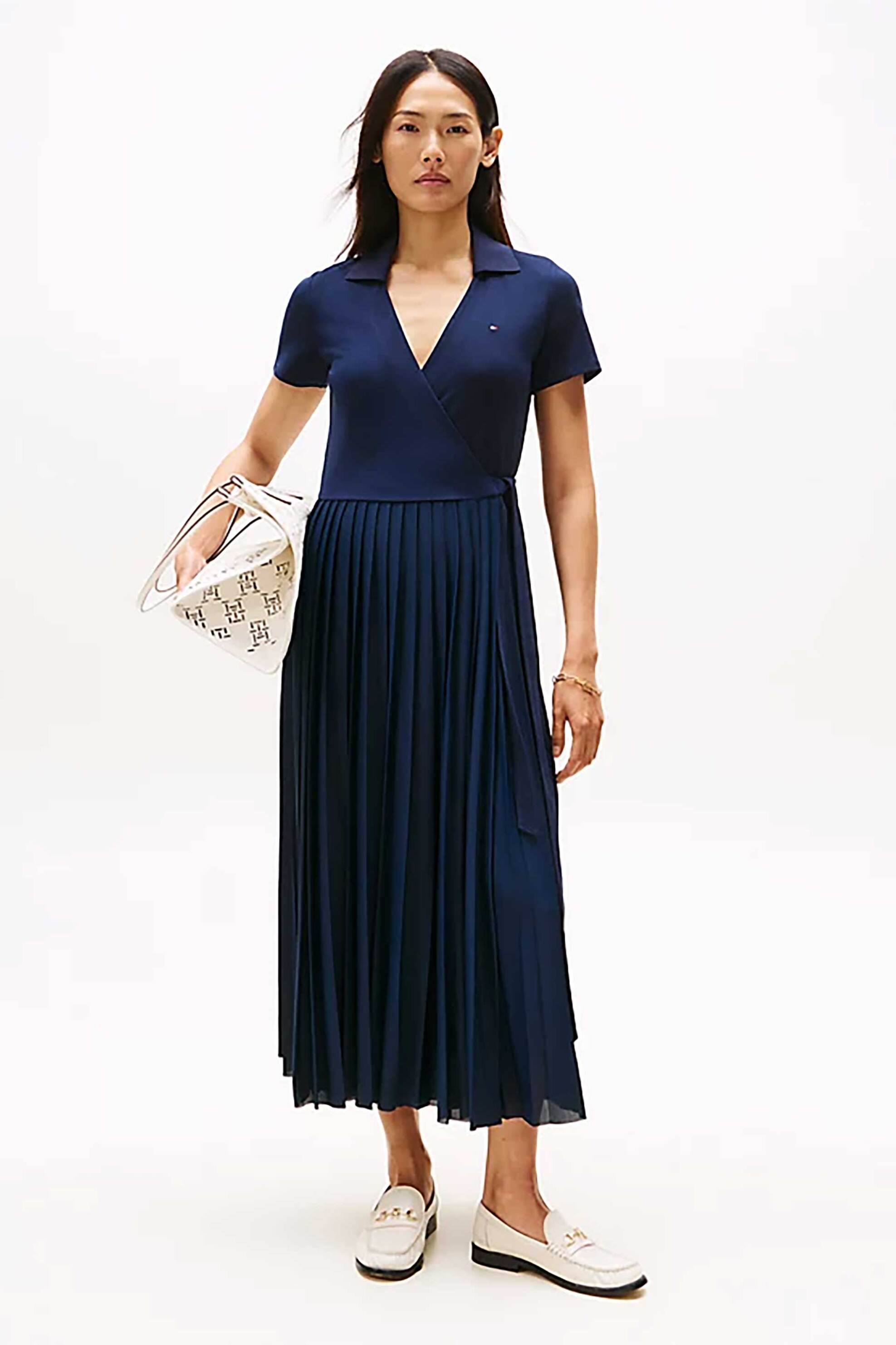 Γυναικείο midi φόρεμα. Μονόχχρωμο. Κρουαζέ. Λογότυπο στο στήθος. Προέλευση: CN. 100% polyester SARKK ΑΕ