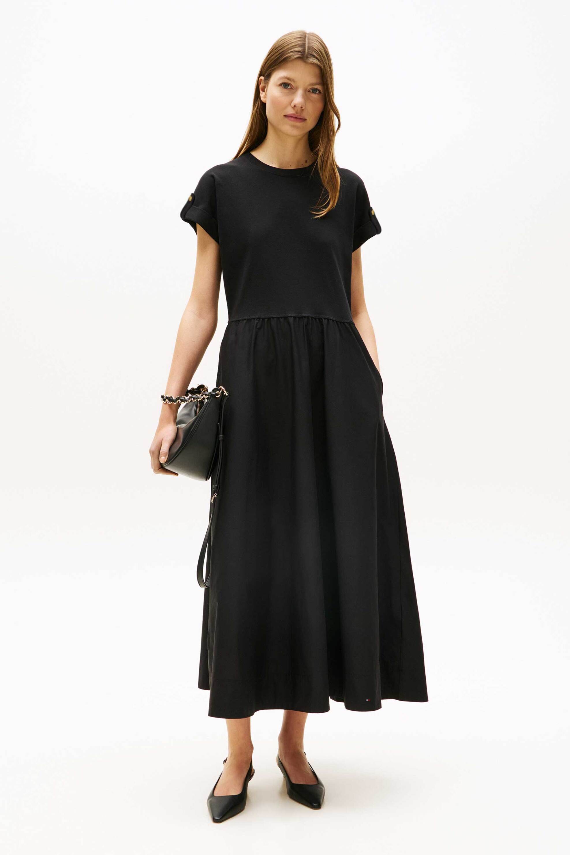 Γυναικείο midi φόρεμα. Μονόχρωμο. Στρογγυλή λαιμόκοψη. Κοντό μανίκι. Προέλευση: TR. 97% βαμβάκι, 3% elastane SARKK ΑΕ