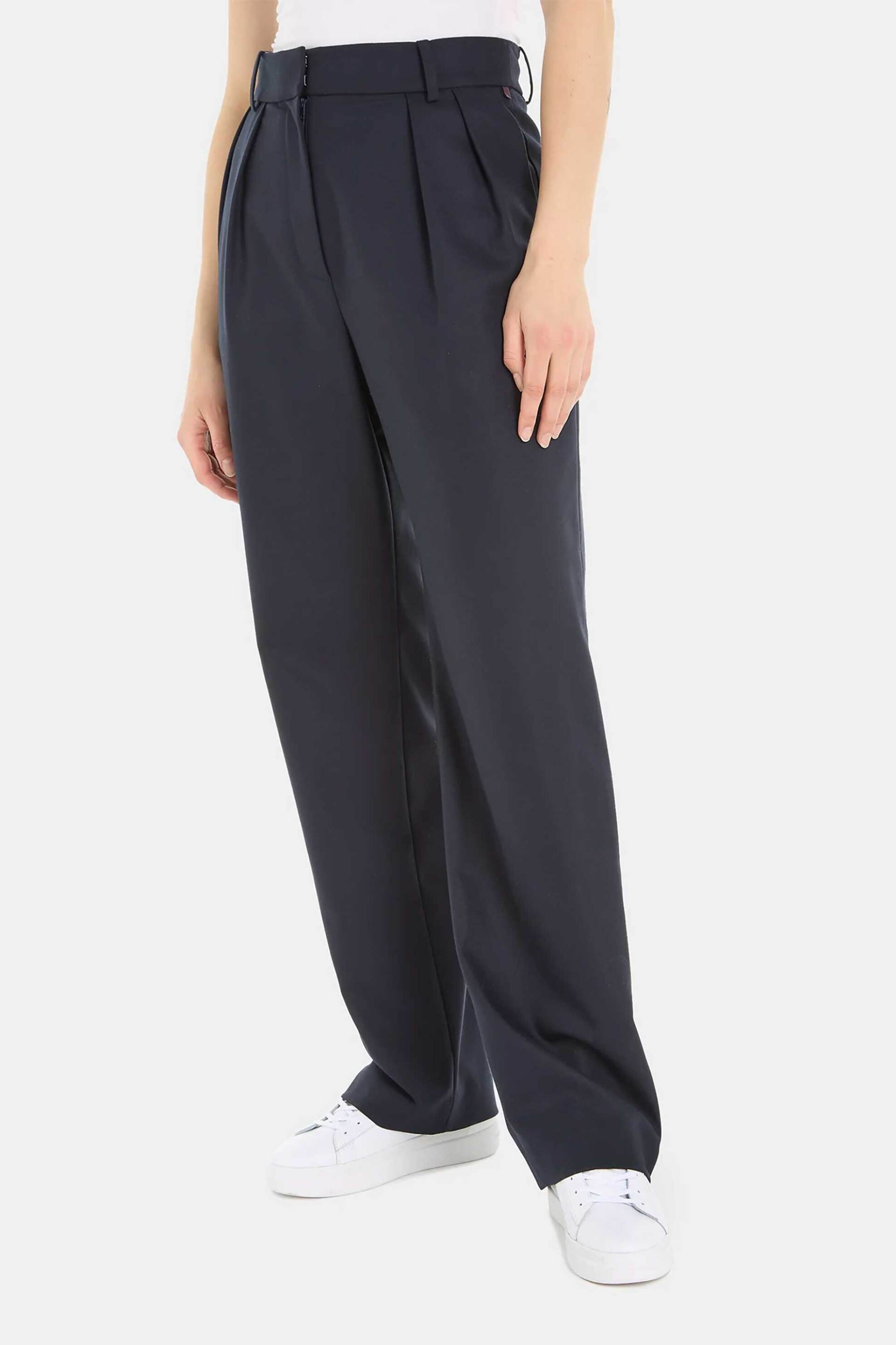 Γυναικείο παντελόνι. Μονόχρωμο. Κλείσιμο με φερμουάρ και κρυφό κούμπωμα. Τσέπες στο μπροστινό και πίσω μέρος. Σχέδιο με πιέτες στο μπροστινό μέρος. Λεπτομέρεια με κεντημένο μονόγραμμα στο πίσω μέρος. Straight fit. 32% Ecovero™ βισκόζη, 66% recycled polyester, 2% elastane. Sustainable: προϊόν που έχ...