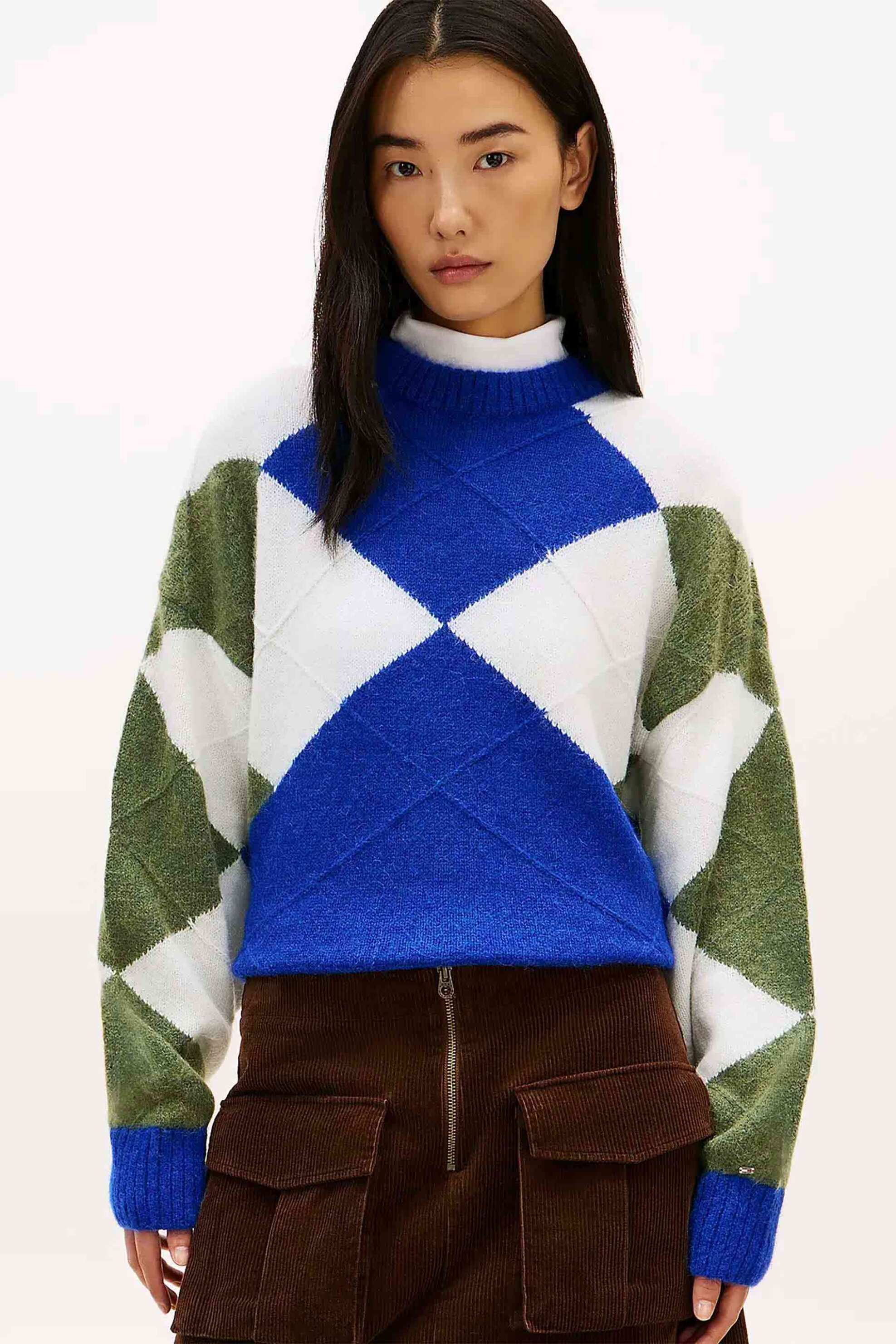 Γυναικείο πουλόβερ. Geometrical pattern. Στρογγυλή λαιμόκοψη. Oversized fit. Προέλευση: VN. 50% alpaca, 50% nylon SARKK ΑΕ