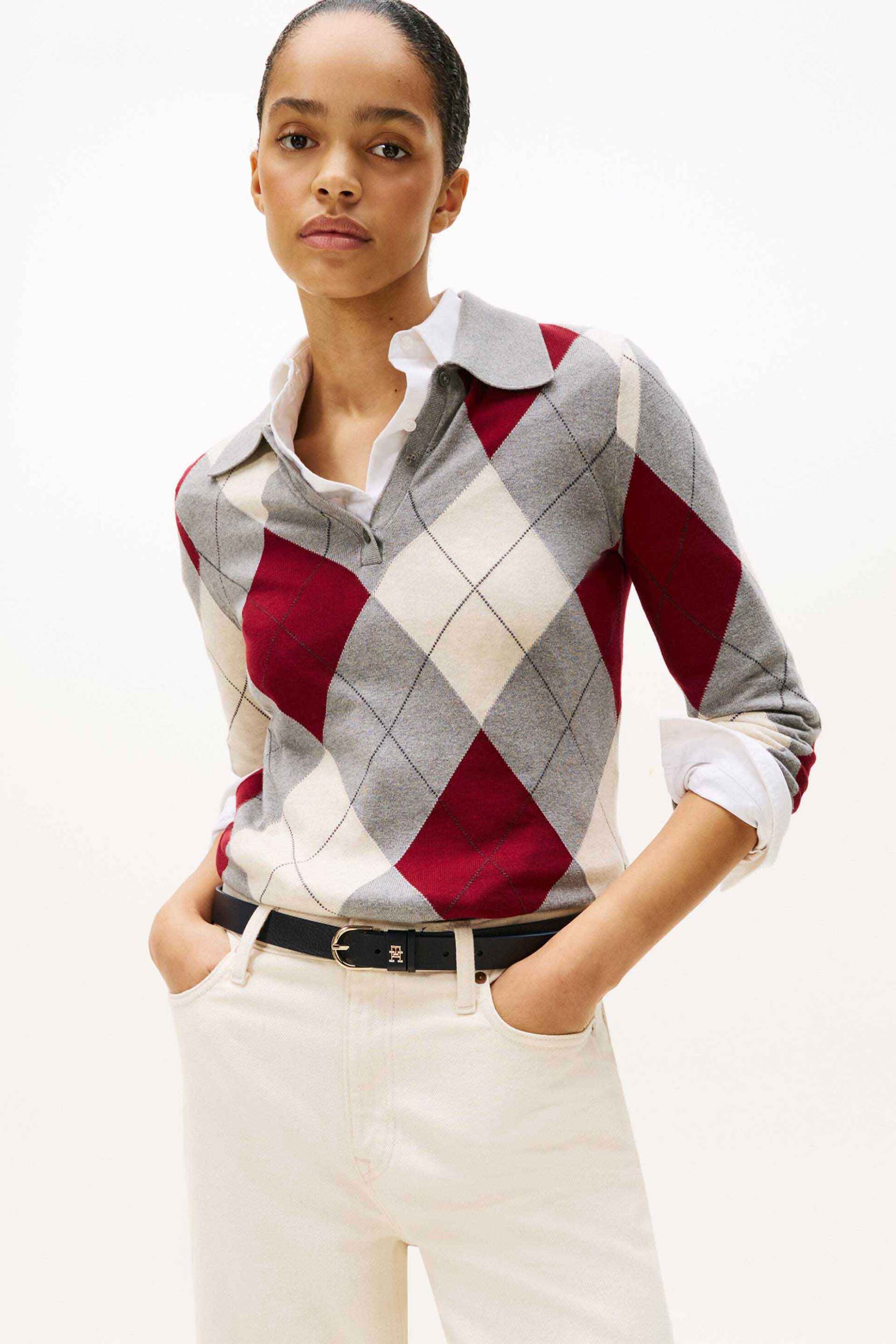 Γυναικείο πλεκτό πουλόβερ. Καρό σχέδιο. Πατιλέτα με 3 κουμπιά. Slim fit. Προέλευση: VN. 100% βαμβάκι SARKK ΑΕ