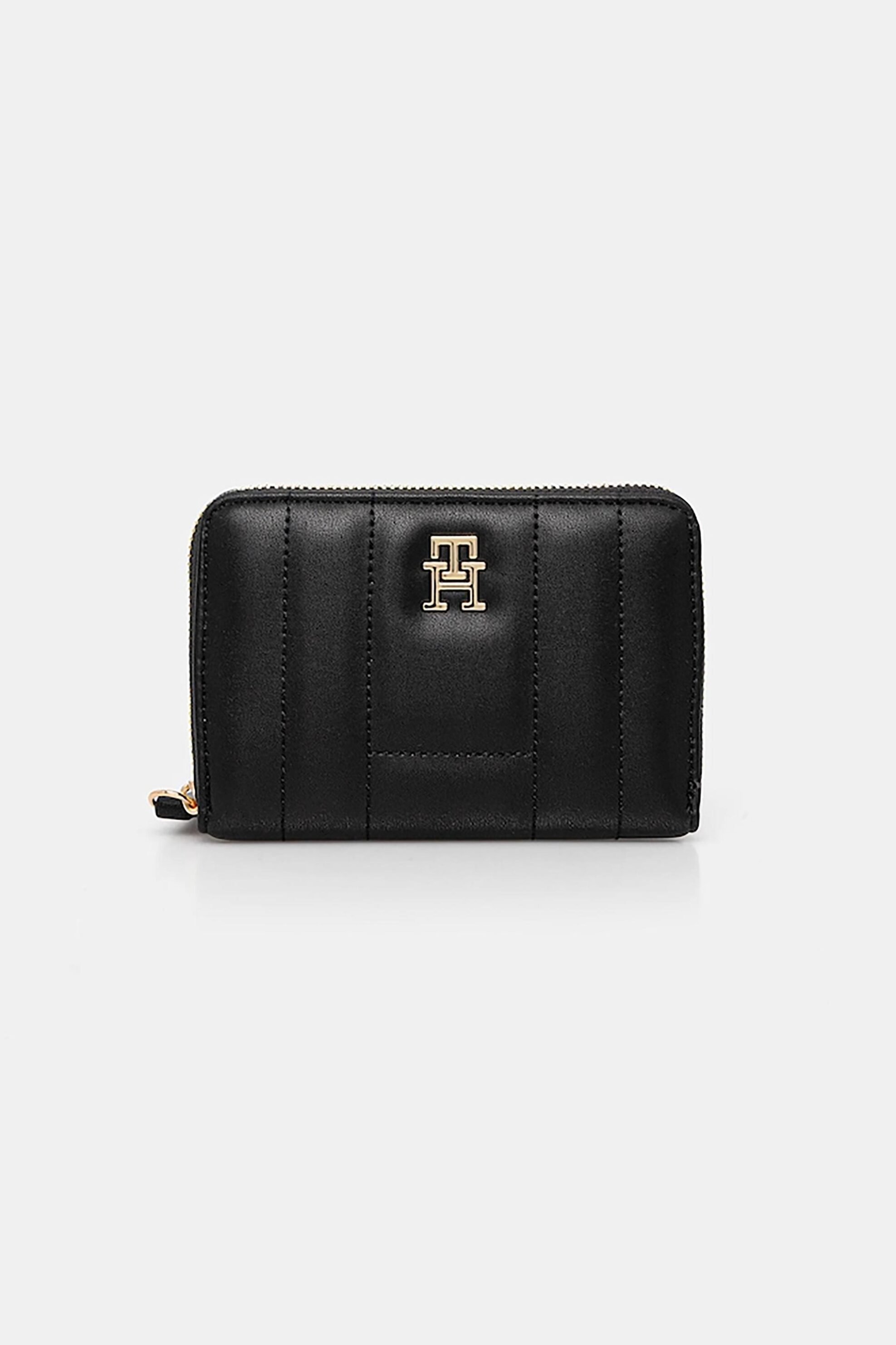 Γυναικείο πορτοφόλι. Μεταλλικό μονόγραμμα. Κλείσιμο με φερμουάρ. Τσέπη νομισμάτων με κούμπωμα. Μοντέλο με επένδυση. Αριθμός υποδοχών καρτών: 4. Διαμέρισμα για χαρτονομίσματα. Διαστάσεις: 13,5 x 9,5 cm. Προέλευση: CN. 100% polyurethane SARKK ΑΕ