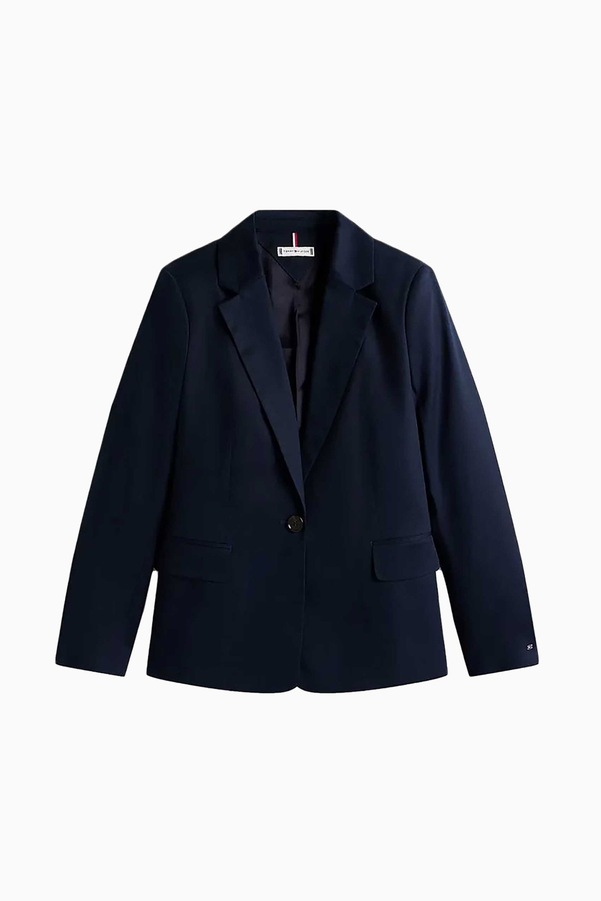 Γυναικείο σακάκι. Μονόχρωμο. Κλείσιμο με κουμπί. Στρογγυλή λαιμόκοψη. Τσέπες flap στο πλάι. Slim fit. Προέλευση: ΜΑ. 65% βαμβάκι, 43% rayon, 2% elastane SARKK ΑΕ