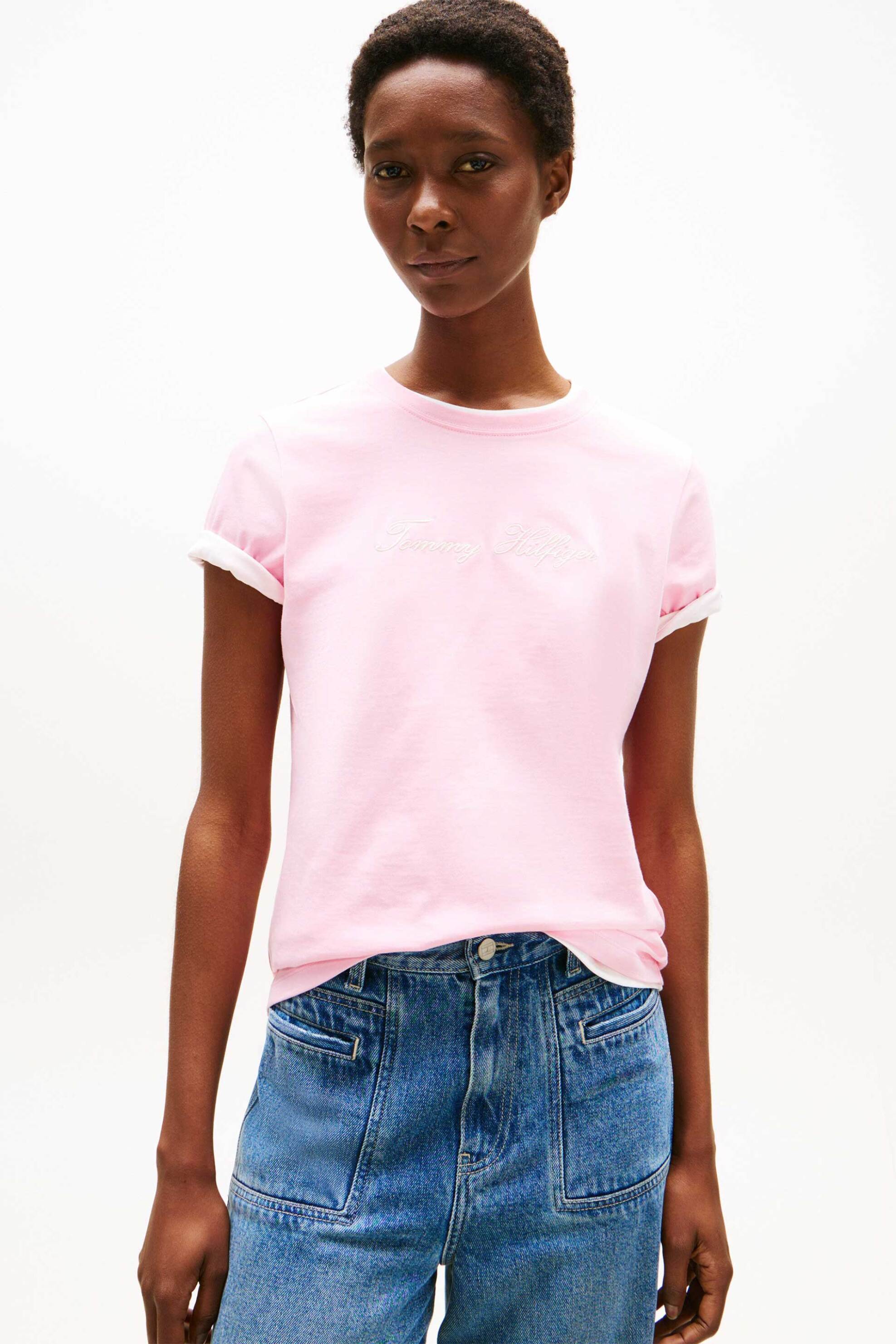 Γυναικείο T-shirt. Μονόχρωμο. Λογότυπο στο στήθος. Στρογγυλή λαιμόκοψη. Regular fit. Προέλευση: BD. 100% βαμβάκι SARKK ΑΕ
