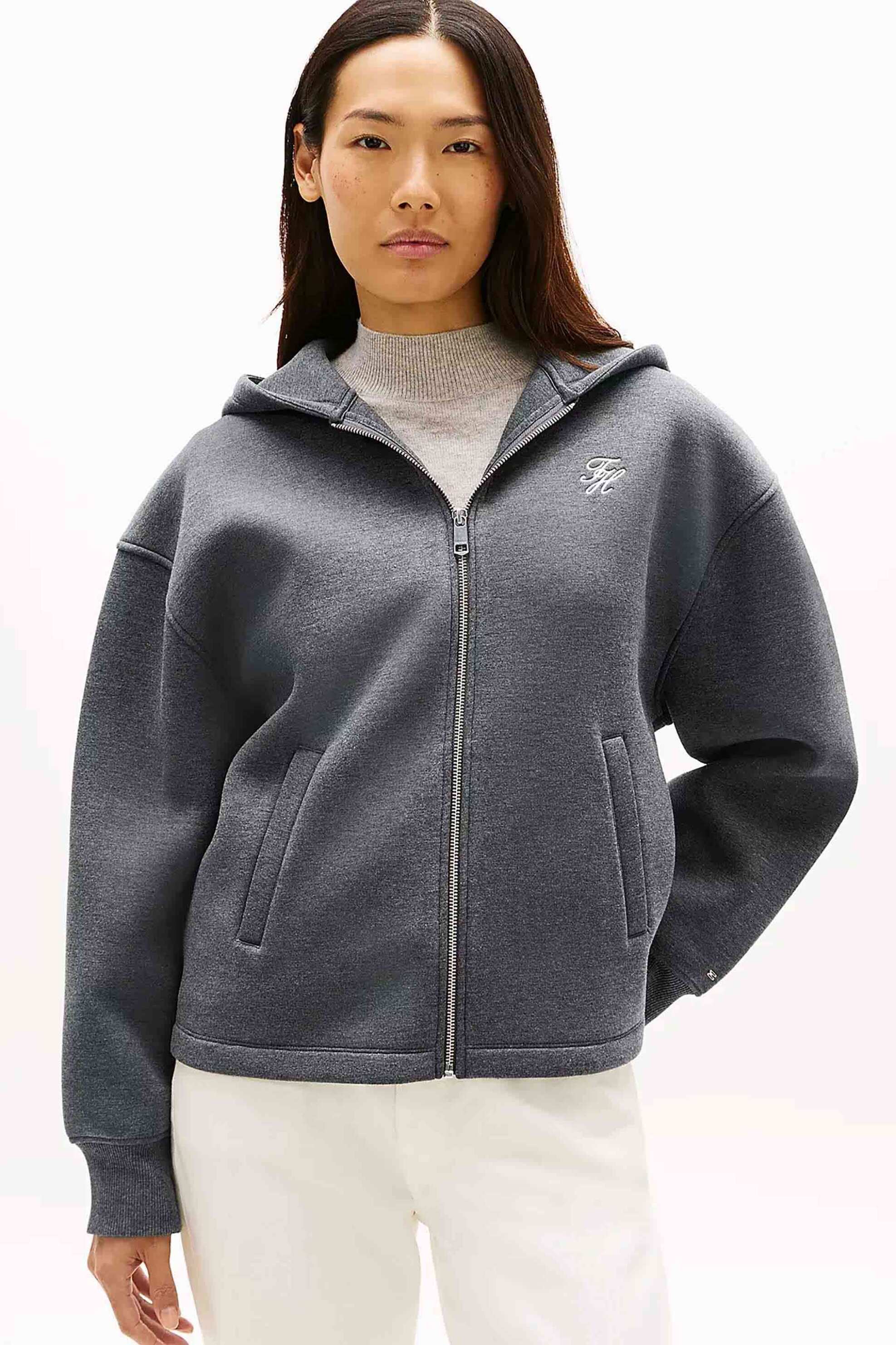 Γυναικεία ζακέτα. Λογότυπο στο στήθος. Κλείσιμο με φερμουάρ. Relaxed fit. Προέλευση: VN. 100% βισκόζη SARKK ΑΕ