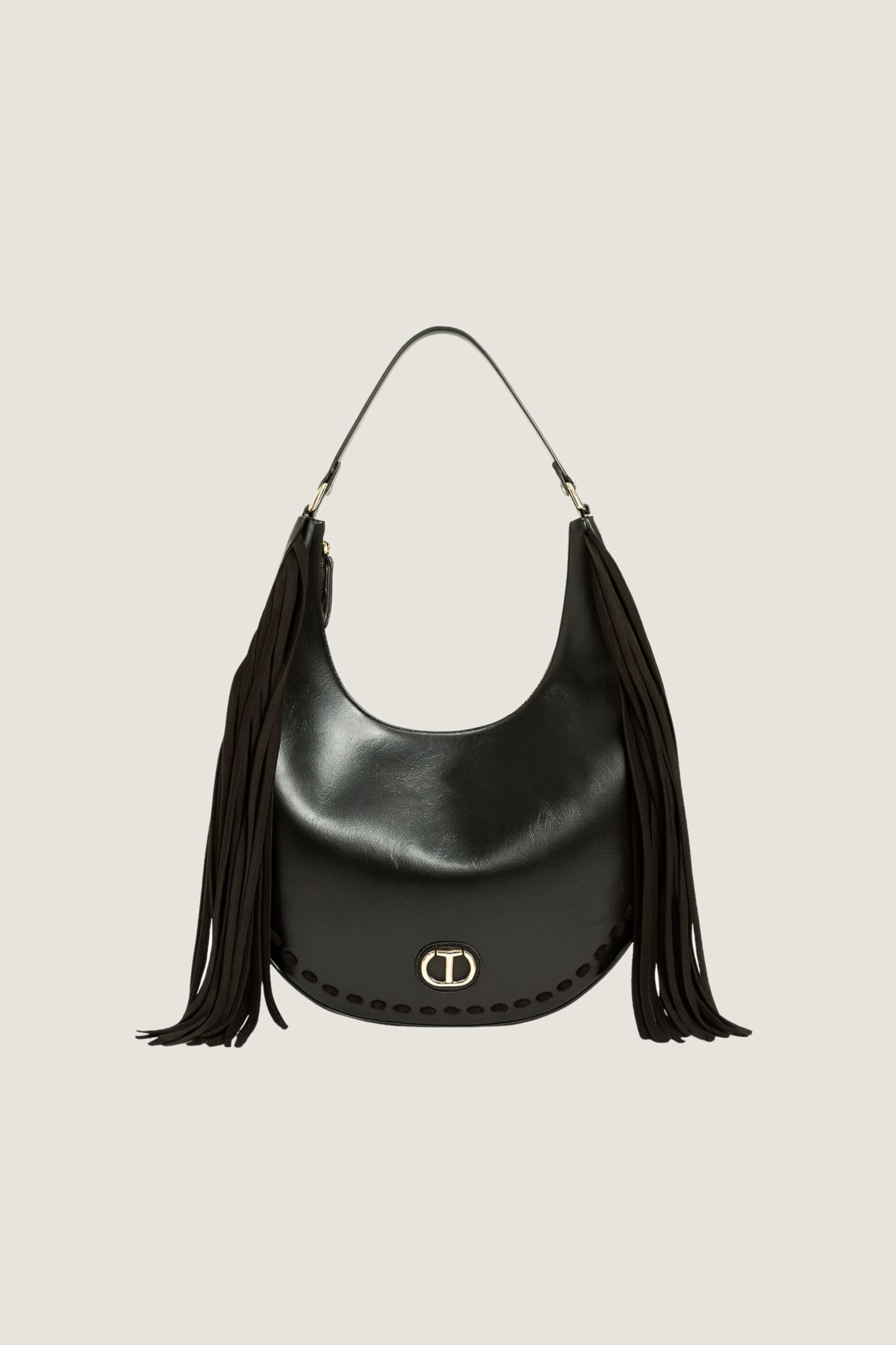 Γυναικεία τσάντα ώμου. Ανάγλυφο λογότυπο. Διακοσμητικά κρόσσια. Κλείσιμο με φερμουάρ. Εσωτερική θήκη. Προέλευση: Italy. 100% polyurethane ΠΑΓΩΝΗ Ε. ΑΕ ΕΙΣ.ΕΜΠΟΡ.ΒΙΟΜ.ΕΝΔΥΜΑΤΩΝ