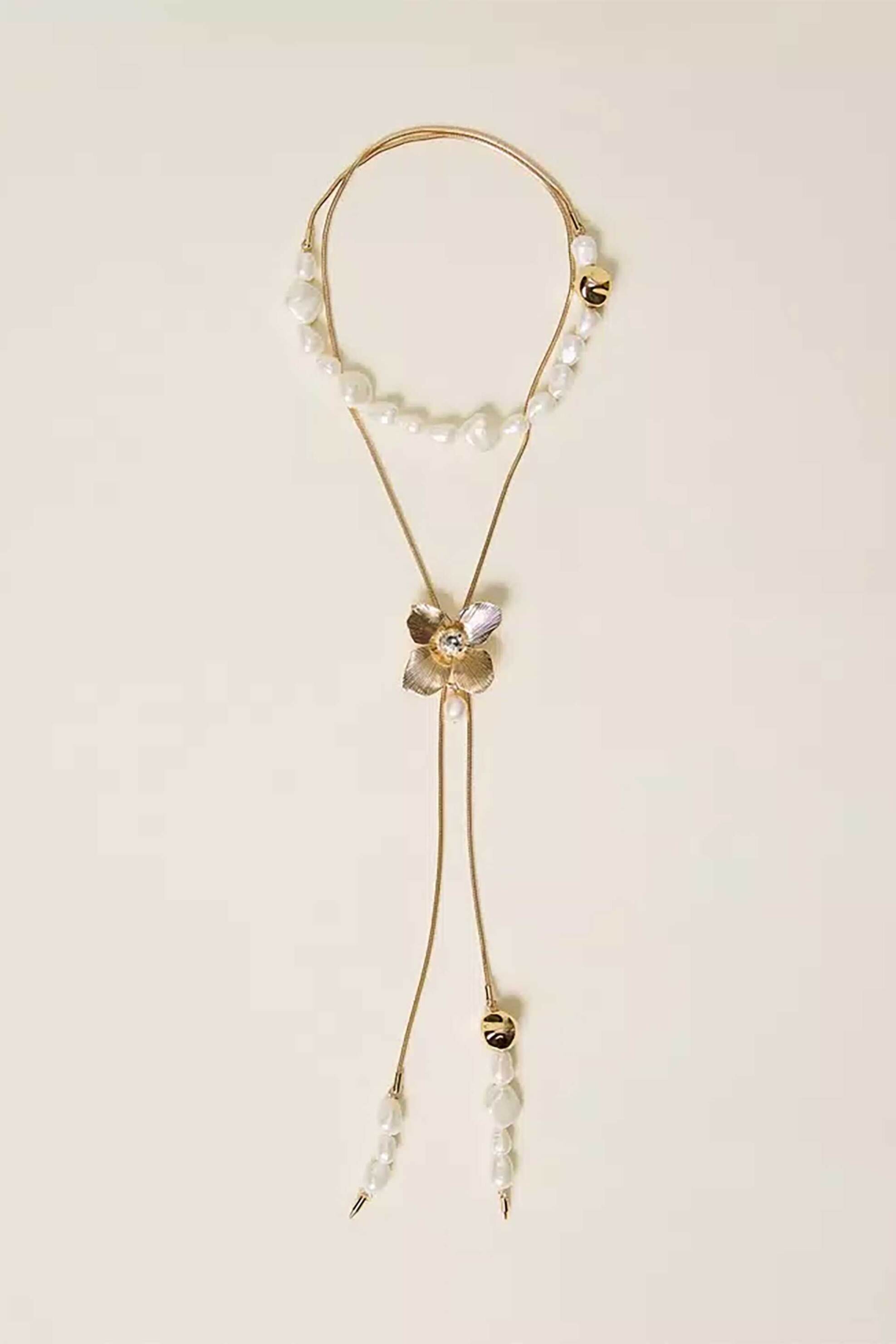 Γυναικείο κολιέ με πέρλες και λουλούδι. Προέλευση: Italy. 100% μέταλλο ΠΑΓΩΝΗ Ε. ΑΕ ΕΙΣ.ΕΜΠΟΡ.ΒΙΟΜ.ΕΝΔΥΜΑΤΩΝ