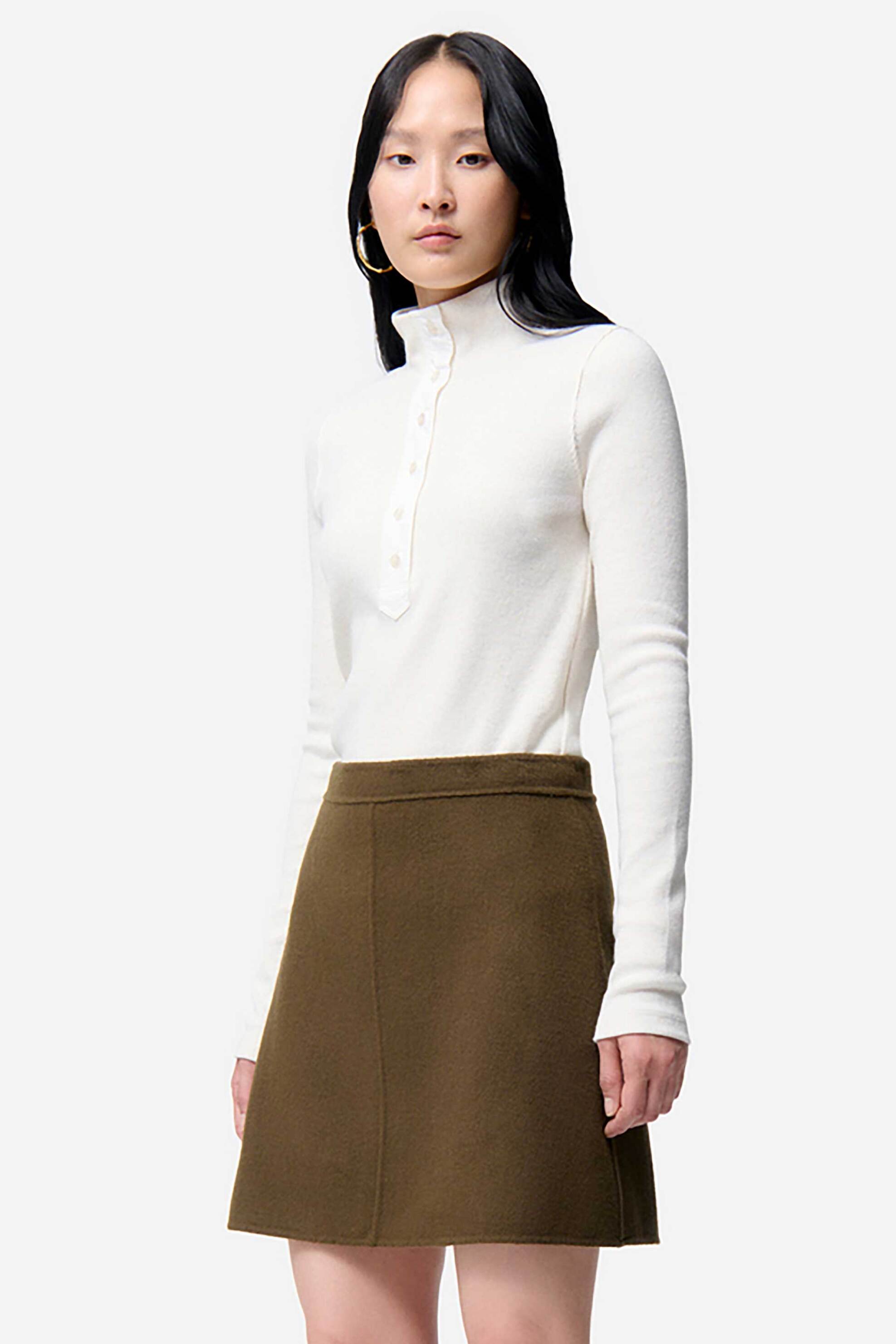 Γυναικεία mini φούστα. Ψηλόμεση. Κλείσιμο με φερμουάρ. Straight fit. Προέλευση: CN. 80% μαλλί, 20% polyamide SOLUNE SAS
