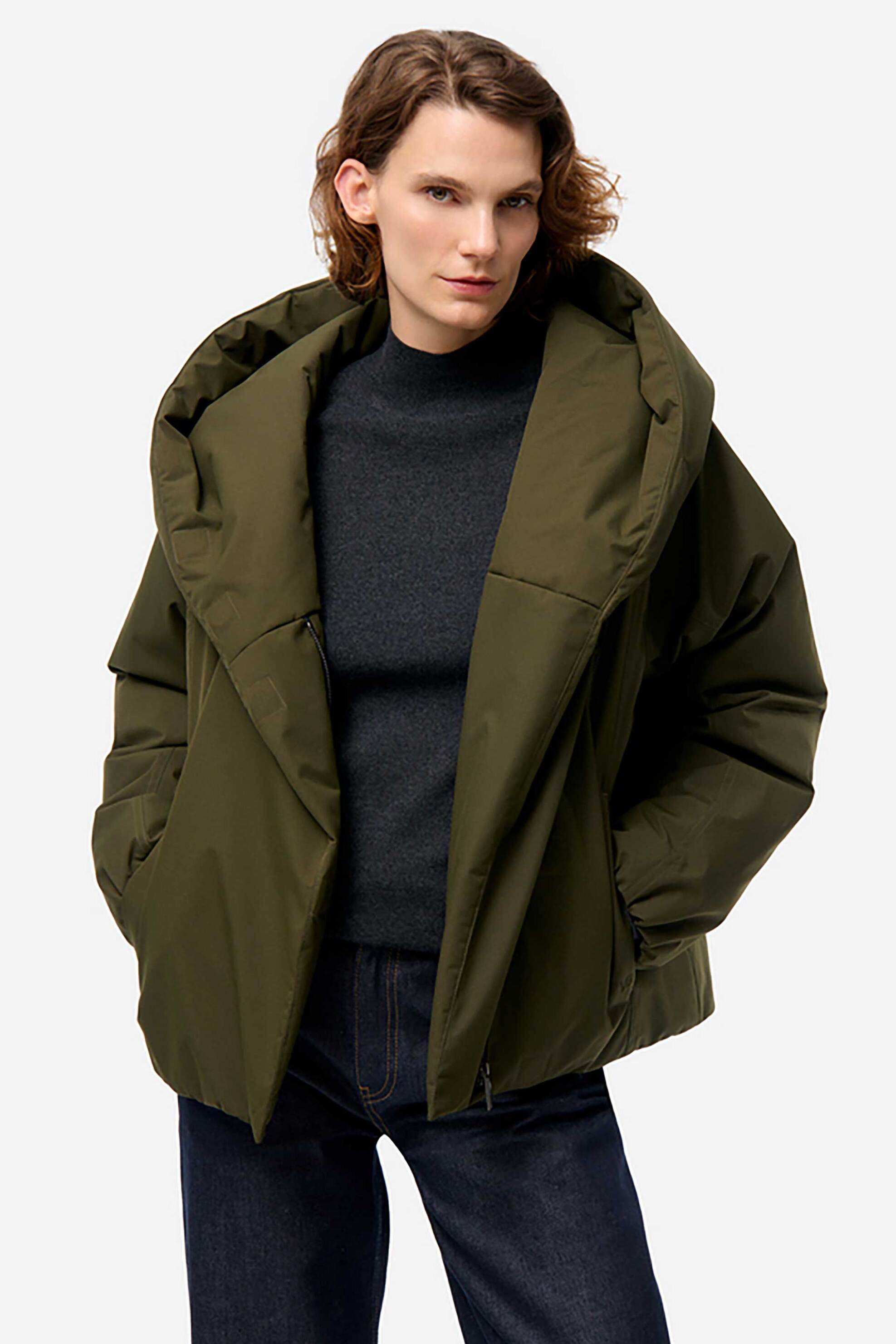Γυναικείο μπουφάν. Κοντό. Φαρδύς γιακάς. Κλείσιμο με φερμουάρ και κουμπί. Τσέπες στο πλάι. Λογότυπο στο στήθος. Προέλευση: CN. 100% polyester SOLUNE SAS