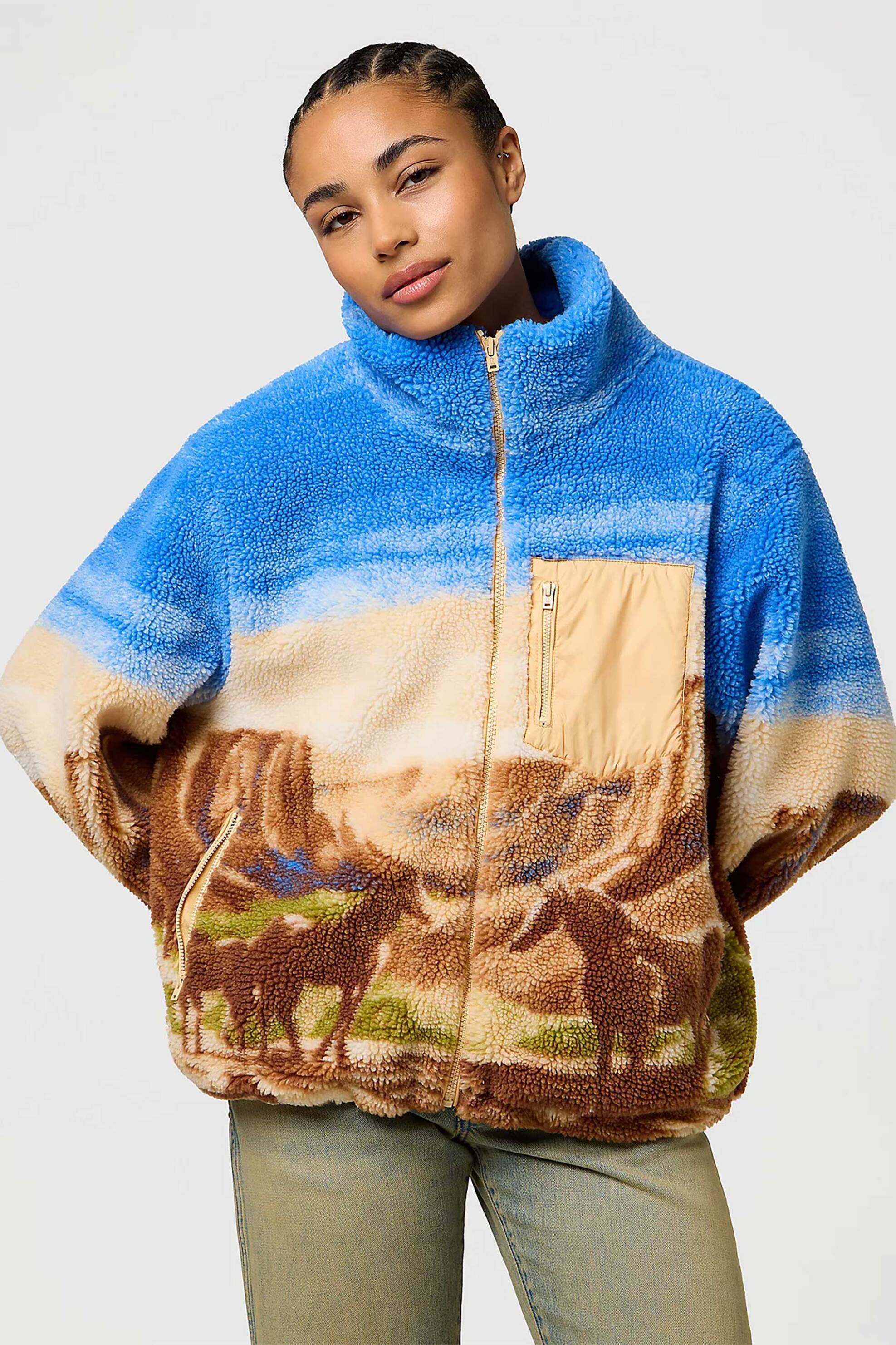 Γυναικεία ζακέτα. Μπουκλέ. Σχέδιο. Κλείσιμο με φερμουάρ. Τσέπες με φερμουάρ στο πλάι και στο στήθος. Ψηλός λαιμός. Relaxed fit. 100% polyester Το μοντέλο έχει ύψος 172 cm και φοράει μέγεθος S. PALALTO LIMITED & ΣΥΝΕΡΓΑΤΕΣ ΜΙΚΕ