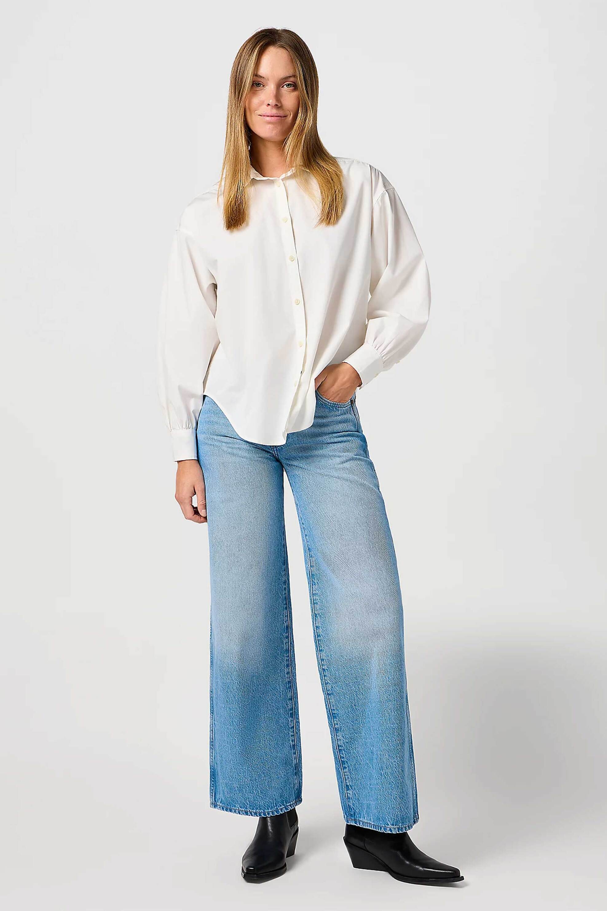 Γυναικείο τζιν παντελόνι. Πεντάτσεπο. Κλείσιμο με κουμπί και φερμουάρ. Logo patch στο πίσω μέρος. Wide fit. 100% βαμβάκι PALALTO LIMITED & ΣΥΝΕΡΓΑΤΕΣ ΜΙΚΕ